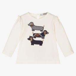 Lovely red long-sleeved cotton top for little girls by Portuguese brand Dr. Kid. Comfortable to wear, it has a sparkling bow motif on the front made from red and silver diamantés. A sweet 'My best gift is you' slogan is embroidered above in gold. It fastens with a keyhole button fastening around the back and for an extra designer touch, there is a small mother-of-pearl logo charm attached to the hem.
