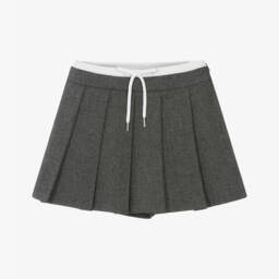 Stylish red tartan skort for girls by Elsy, made in a soft viscose blend with a smooth flannel feel. There are pleats on the front and large gold metal button trims. The back of the waistband is elasticated for comfort and there is a zip fastening on the side.