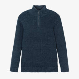 Teen boys navy blue graphic sweater by MC2 Saint Barth, knitted in a luxurious wool and cashmere blend. Embroidered with the brand's logo on one sleeve, it has a festive snowy ski mountain resort knitted on the front for a seasonal vibe. It has a relaxed crew neckline and stretchy ribbed trims.