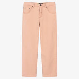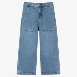 Teen boys light blue denim jeans by Molo feature a relaxed fit in a carpenter style. Crafted from a cotton blend, these jeans come equipped with multiple pockets, including trendy patch pockets on the legs, and fasten with a zip and branded button. Belt loops provide a comfortable fit, making them perfect for everyday wear. Limited quantities available, so do not miss your last chance to buy.