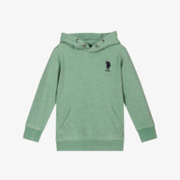 In navy blue, burgundy red and white, this hooded sweatshirt for boys is by U.S. Polo Assn.. It is made in soft cotton jersey with a warm fleecy inside. There is a pouch pocket on the front and faux drawstring detailing on the hood.. The brand's double horseman logo is printed in white on the chest.