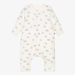 Boys ivory and green star babygrow by Petit Bateau is a charming addition to any little wardrobe. Crafted from soft organic cotton jersey, it is gentle on the skin and features a muted green star print. Ribbed edges enhance comfort, while popper fastenings on the front and between the legs ensure easy dressing. Limited quantities available, so it's a last chance to buy this adorable piece.