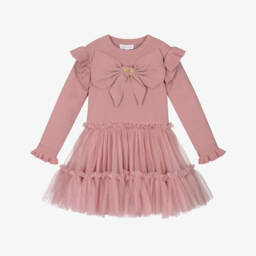 Teen girls orange, pink and yellow special occasion dress by Angel's Face. Made from silky brocade with a bold heart pattern, this gorgeous dress has the signature gold heart charm and grosgrain bow sewn onto the waist. It has chic flutter sleeves, and a full skirt gathered from the waist for a stylish silhouette. Lined in lightweight chiffon for a comfortable fit, it fastens on the back with a shiny gold heart zip-pull.