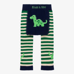 Adorable pink leggings for little girls by Blade & Rose, made in a soft and stretchy cotton blend jersey. They have a sweet dinosaur pattern on the legs and an adorable green dinosaur appliqué on the back. These lightweight leggings have a contrasting purple waistband, which is gently elasticated to allow your child to move around and play comfortably.