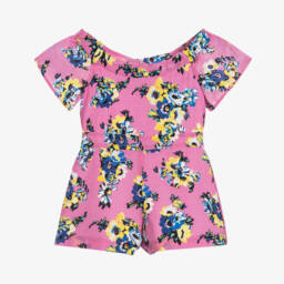 Girls blue and white striped playsuit by Chloé, directly inspired by the adult collection. This casual, short sleeved playsuit is made from soft lightweight cotton, with a smooth cotton lining. It can be drawn in at the waist for a more feminine shape and fastens with gold, branded poppers.
