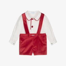 Smart casual shirt and shorts set for boys by Foque, made with cotton for comfortable wear. The lightweight blue and white striped shirt has a button-down collar and a navy blue embroidered yacht on the chest. In contrasting bright yellow for an eye-catching look, the twill shorts have chino-style pockets on the front and back. Fastening with a zip and button, the shorts have useful belt loops and an adjustable waist for a great fit.