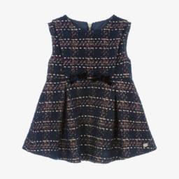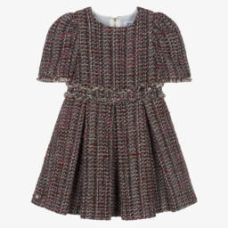 Vibrant red festive dress for girls by Tartine et Chocolat, made in soft twill, with a brushed feel. It has a logo tab above the hem and lovely broderie anglaise trims on the oversized collar and cuffs. It fastens with a zip on the back and has a lightweight cotton lining.