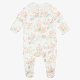 Tartine et ChocolatКремовый хлопковый ромпер с цветочным узором для девочек