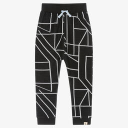 Black joggers for boys and girls by Turtledove London, made in a soft lightweight organic cotton jersey. They have contrasting light beige fur pockets on the knees for a playful and contemporary look. The ribbed cuffs and elasticated drawstring waistband allow for a comfortable and cosy fit. There is also a small branded tab on the cuff for an added designer touch.