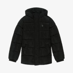 U.S. Polo Assn.Boys Black Hooded Puffer coat with Double Horsemen Logo