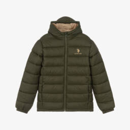 U.S. Polo Assn.Boys Green Hooded Puffer Coat with Double Horsemen Logo