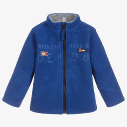 Reversible, hooded zip-up top for boys and girls by French brand Week-end à la mer. One side is made in cotton jersey in the brand's signature navy blue and white Breton stripes with the brand's red fish logo embroidered on the chest. The other side is made in soft and cosy navy blue faux fur fleece. Can be worn as a lightweight everyday jacket, both sides have a small logo tab on one sleeve.