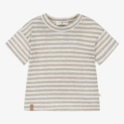 Boys beige black stripe t-shirt by 1 + in the family offers a blend of style and comfort. Crafted from soft, lightweight linen with a hint of elastane, it features short sleeves and a lightly ribbed crew neck. The addition of a logo tab on the hem adds a designer touch. Perfect for spring and summer wear, this piece is available in limited quantities, so don't miss your last chance to buy.