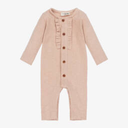 The girls ivory and pink striped babygrow by 1 + in the family features a charming design perfect for spring and summer. Crafted with a soft knitted fabric of cotton, modal, and elastane, this babygrow offers a snug and comfortable fit for little ones. The button-down front ensures easy dressing, while the integrated feet keep tiny toes cosy. Available in limited quantities, it's a last chance to buy this delightful piece for a newborn's wardrobe.