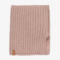 The girls ivory ribbed knit snood by 1 + in the family is a lovely accessory. Made from a soft alpaca wool blend, it provides extra warmth during colder months. This cosy chunky knit features a side split and a beige logo tab on the front. Last chance to buy, limited quantities available.
