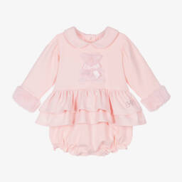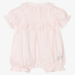 Girls white and pink bunny shortie by A Dee captures playful charm and comfort. Crafted from soft cotton jersey, it features delightful ruffles and a sweet bunny motif on the front. The pastel pink stripes add an adorable touch, while popper fastenings at the back and between the legs ensure effortless changes. Perfect for spring and summer, this charming shortie offers both style and practicality. Limited quantities available, so secure yours today.