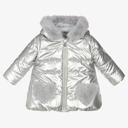 Super cute, this stand out red coat for younger girls is from Little A by A Dee. Silky soft and warmly padded, it has faux fur, heart-shaped pockets and a matching faux fur trim on the hood. There is a glittery, heart logo badge on one sleeve and a front zip fastening with a silver logo pull tab and a useful chin guard. Ideal for cooler days, it has a cosy, fleecy lining.