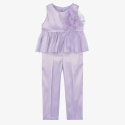 The ivory satin and tulle trouser set for girls by Abel & Lula is a charming ensemble featuring a sleeveless top with a peplum hem adorned with soft tulle layers and a statement tulle flower. Lined with cosy cotton, the top offers a comfortable fit with its keyhole button fastening at the back. Paired with matching trousers that include practical slanted front pockets, an adjustable waist, and a concealed side zip, this set is perfect for any special occasion. Limited quantities available, so act fast to secure this elegant outfit.
