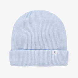 Pale pink layette hat for baby girls by Absorba, made in ribbed cotton jersey. Beautifully soft, it has a turned-up brim with a small embroidered logo badge.