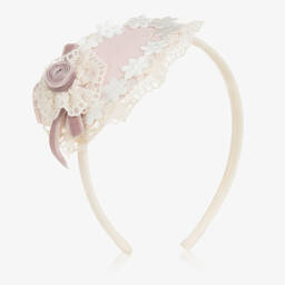 Girls ivory and green lace hairband is by Abuela Tata, perfect for a romantic and feminine look. The elegant design features lightweight tulle, lovely lace, and charming velvet ribbon bow and flower detailing. Great for any special occasion, it has a smooth fabric covered flexible band for comfortable wear. Limited quantities available, last chance to buy!