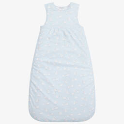 Suitable for baby boys and girls, a viscose bamboo muslin sleep bag by aden + anais. Super soft, lightweight and breathable, with a 1.0 tog warmth rating, this comforting sleep bag fastens with a zip on the front. In navy blue with white trims, it has a starry sky and moon print.