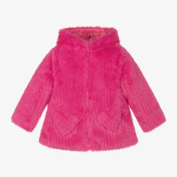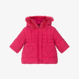Girls faux fur coat by Agatha Ruiz de la Prada is crafted from beautifully soft materials, offering luxurious warmth with its lightweight padding and silky satin lining. The cosy hood and charming heart-shaped pockets add a delightful touch, while the zip fastening allows easy wear. Suitable for chilly days, this coat is a stylish yet practical choice for young ones. Last chance to buy, with limited quantities available.