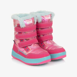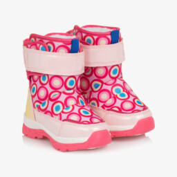 Girls pink star snow boots by Agatha Ruiz de la Prada bring both style and warmth. With smooth textile uppers and a soft fleece lining, these boots ensure comfort in chilly weather. The water-resistant ARPTEX membrane and non-slip rubber soles provide practicality for outdoor adventures. Easy zip fastening makes them convenient to wear. Limited quantities available, so grab a pair for winter fun.