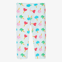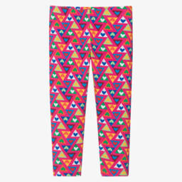 Girls green heart pattern leggings by Agatha Ruiz de la Prada feature a delightful pink heart-shaped strawberry design. Crafted from soft and stretchy cotton jersey, these leggings are both vibrant and comfortable, with an elasticated waistband for easy wear. A charming heart-shaped logo charm adds a playful touch. Suitable for casual outings, these leggings are in limited quantities, so it's your last chance to buy.