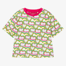 The girls red floral T-shirt by Agatha Ruiz de la Prada features a vivid flower design on a soft, knitted cotton jersey. Ideal for spring and summer, it showcases charming puffed sleeves, offering both style and comfort. Perfect for adding a pop of colour to any wardrobe, this piece effortlessly combines playfulness with elegance. Limited quantities available, making it a last-chance opportunity to own this delightful top.