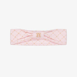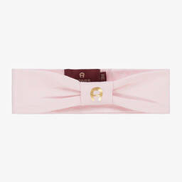 This soft pink cotton hairband for baby girls by AIGNER is crafted from beautifully soft Pima cotton jersey, featuring a charming bow with a metallic gold flower logo. Its stretchy design offers a comfortable fit, suitable for delicate little heads. Limited quantities available, making it a delightful addition to any autumn or winter outfit.