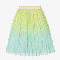 Pink and orange ombré skirt for girls by German designer AIGNER. Lightweight with a sheen, this pretty skirt has gently ruched tiers and a subtle horizontal striped print. Lined for comfort, the ivory elasticated waistband has a white rubberised signature 'A' horseshoe logo.
