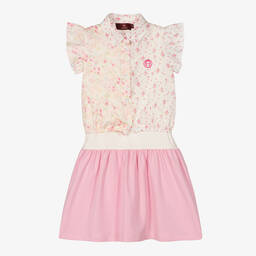 Teen girls white and yellow dress set by AIGNER, made in soft and stretchy cotton jersey. The yellow sleeveless dress has a skirt with a net overlay. It comes with a white cropped T-shirt that has a colourful signature 'A' horseshoe logo print on the chest. The top can be worn over the top of the dress or separately.