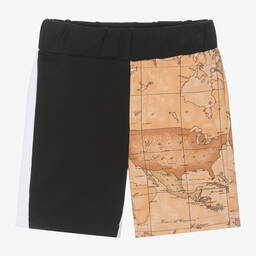 Boys navy blue geo map shorts by Alviero Martini are made from soft and stretchy cotton jersey. This stylish pair features the brand's iconic dark beige Geo map pattern and a 1a Classe logo print on the back patch pocket. The gently elasticated waistband ensures a comfortable and casual fit, ideal for adventurous spring and summer days. Limited quantities available, so it's the last chance to buy these unique shorts.