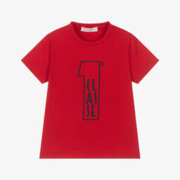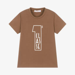 Brown cotton T-shirt for boys and girls by Alviero Martini, with a white 1a Classe logo print on the front. Cool and comfortable, it is made in soft jersey, ideal for stylish casual wear.