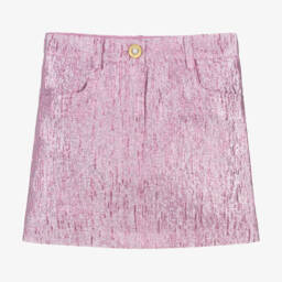 Girls metallic blue jacquard skirt by Angel's Face offers a shimmering touch to any wardrobe. This beautifully textured piece features a stunning tonal pattern, enhanced by a golden branded button with a central crystal, and practical pockets for added convenience. The adjustable waist provides a comfortable fit, making it lovely for parties or everyday elegance. Limited quantities available, don't miss the chance to add this charming skirt to your collection.