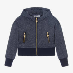 Girls orange zip-up hoodie from Angel's Face, made in soft cotton velour with ribbed trims. There are beautiful gold sequinned wing motifs on the sleeves, and the signature gold heart charm and bow on the chest. It has a pouch pocket and a gold heart charm zip pull on the front zip fastening.