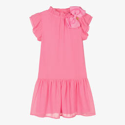 Gorgeous yellow chiffon dress for teen girls by Angel's Face, trimmed with the brand's signature gold heart charm and oversized grosgrain bow. Soft and lightweight, it has feminine ruffles over the shoulders and around the elasticated neckline, with glamorous gold logo button fastenings on the back. There is a deep frill on the hem and the lining is made in a luxuriously soft cotton and modal jersey blend for comfort.