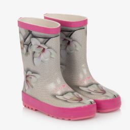 Girls rain boots by A Dee, with a beige leopard print. Waterproof, they have PVC uppers and moulded rubber soles for a good grip. These wellies have a soft cotton lining and slightly padded inner sole.