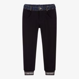 A lovely pair of red star patterned joggers for little boys and girls by Absorba. They are made from mid-weight cotton jersey with a soft and fleecy inside and rolled-up cuffs for a casual look. Easy to pull on, they have an elasticated waistband with an ivory faux drawstring to tie and two pockets on the front.