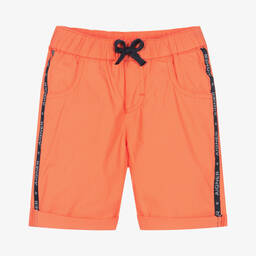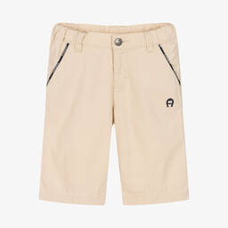 Boys tan cotton cargo shorts are crafted by AIGNER, featuring soft mid-weight jersey for cosy wear. Highlighted with the iconic 'A' horseshoe logo on a cargo pocket, these shorts offer both style and functionality. With concealed side seam pockets and an elasticated waistband with drawstring ties for a comfortable fit, they are suitable for everyday adventures. Limited quantities available, so secure yours today.