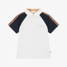 Boys geo print polo shirt by Alviero Martini combines classic style with a unique map design on the shoulders and collar. The shirt is crafted from soft woven cotton with a hint of elastane for comfort, featuring a subtle logo on the chest. Perfect for spring and summer outings, it pairs effortlessly with shorts or jeans. Limited quantities available, making this a last chance to buy for those seeking a touch of elegance in everyday wear.
