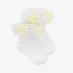 Girls white and navy socks by Beau KiD feature a charming design with tulle roses and sparkly gems. Made from a soft and stretchy cotton blend, these socks ensure comfort and style for little ones. Perfect for special occasions or adding a touch of elegance to everyday outfits. Limited quantities available—last chance to buy.
