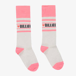 Fun socks for girls by Billieblush, with navy blue and gold glitter stripes. Made in a soft and stretchy cotton blend, they are patterned with the brand's logo in white.
