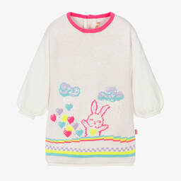 Girls cotton dress with a sequin rainbow detail by Billieblush is crafted from soft, mid-weight jersey. The pale pink hue features a glitter rainbow, stars, and sequin clouds for added sparkle. Designed with long sleeves, ribbed cuffs, and a playful ruffle hem at the back, it offers comfort and style. The neon-coloured logo tab and convenient popper fastenings make dressing easy. Limited quantities available – last chance to buy this charming piece.