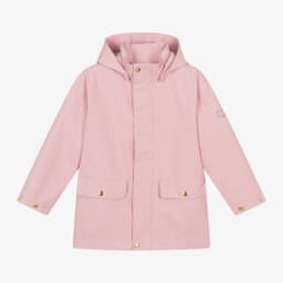 The holographic hooded raincoat for girls by Billieblush is crafted in a smooth, glittery-coated fabric, offering a vibrant lilac purple and turquoise blue design. This stylish coat features glittery popper fastenings and two handy pockets, perfect for keeping essentials safe. Lined with soft jersey, it ensures comfort during rainy days. Limited quantities available, making it a delightful and exclusive addition to any spring or summer wardrobe.