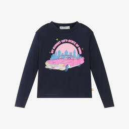The girls pink floral print top by Billieblush brings playful style with its neon pink hue. Crafted from a soft cotton-blend jersey, it features a vibrant and shiny motif of a flower, mushroom, and the word 'Wild' on the front, accompanied by a logo tab on the side seam. Suitable for autumn and winter, this long-sleeved top adds a cheerful touch to any wardrobe. Limited quantities available, don't miss your chance to buy.