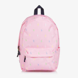 Navy blue backpack for boys and girls by Ralph Lauren, patterned with the brand's multicolour signature pony logo. Made in sturdy canvas, it has a spacious main compartment and an exterior pocket, both zip-fastening with branded bronze tone metal pulls. Great for school, it also features a laptop sleeve, a side slip pocket, a carry handle and a padded backing. The adjustable shoulder straps come with useful chest straps for support and comfort when carrying the bag around.