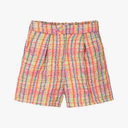 Girls ivory geometric cotton shorts by Bobo Choses offer a playful style with vibrant geometric patterns in red, yellow, blue, and green on a waffled texture. Crafted from organic cotton, the elasticated waistband ensures a comfortable fit for active days. Ideal for spring and summer adventures, these shorts promise both style and practicality. Limited quantities available, so seize the opportunity to add this unique piece to a wardrobe.
