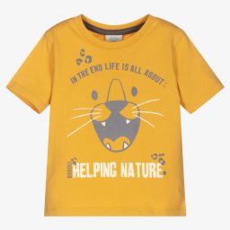 From Spanish brand Boboli, a navy blue T-shirt for boys, made in soft and comfortable cotton jersey. It has a fun glow-in-the-dark print of a whale, with the words 'In the end life is all about: Caring for nature'.