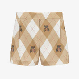 Black chino shorts for boys by luxury British designer Burberry. Made from soft cotton twill, these smart-casual shorts are embroidered with the distinguished Equestrian Knight Design on one leg for a touch of heritage. They have side slip pockets, back pockets, and a stretchy, elasticated waist. They fasten neatly on the front with a concealed hook and zip closure.
